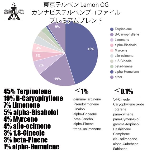東京テルペンのカンナビステルペンプロファイルは香りだけではなく、内容までしっかり再現されているのでアントラージュ効果も期待大です。