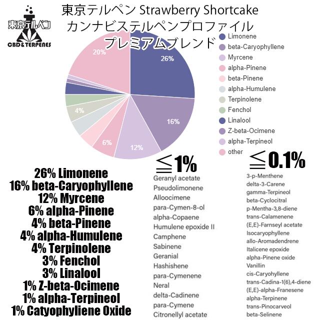 東京テルペンのカンナビステルペンプロファイルは香りだけではなく、内容までしっかり再現されているのでアントラージュ効果も期待大です。