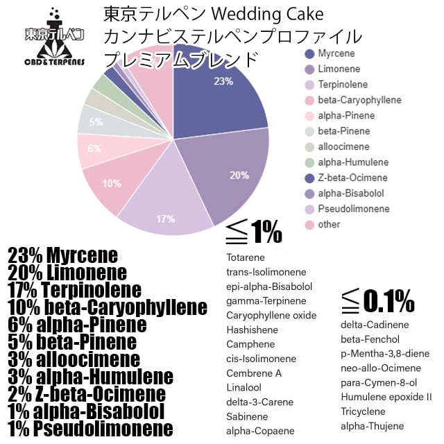 東京テルペンのカンナビステルペンプロファイルは香りだけではなく、内容までしっかり再現されているのでアントラージュ効果も期待大です。